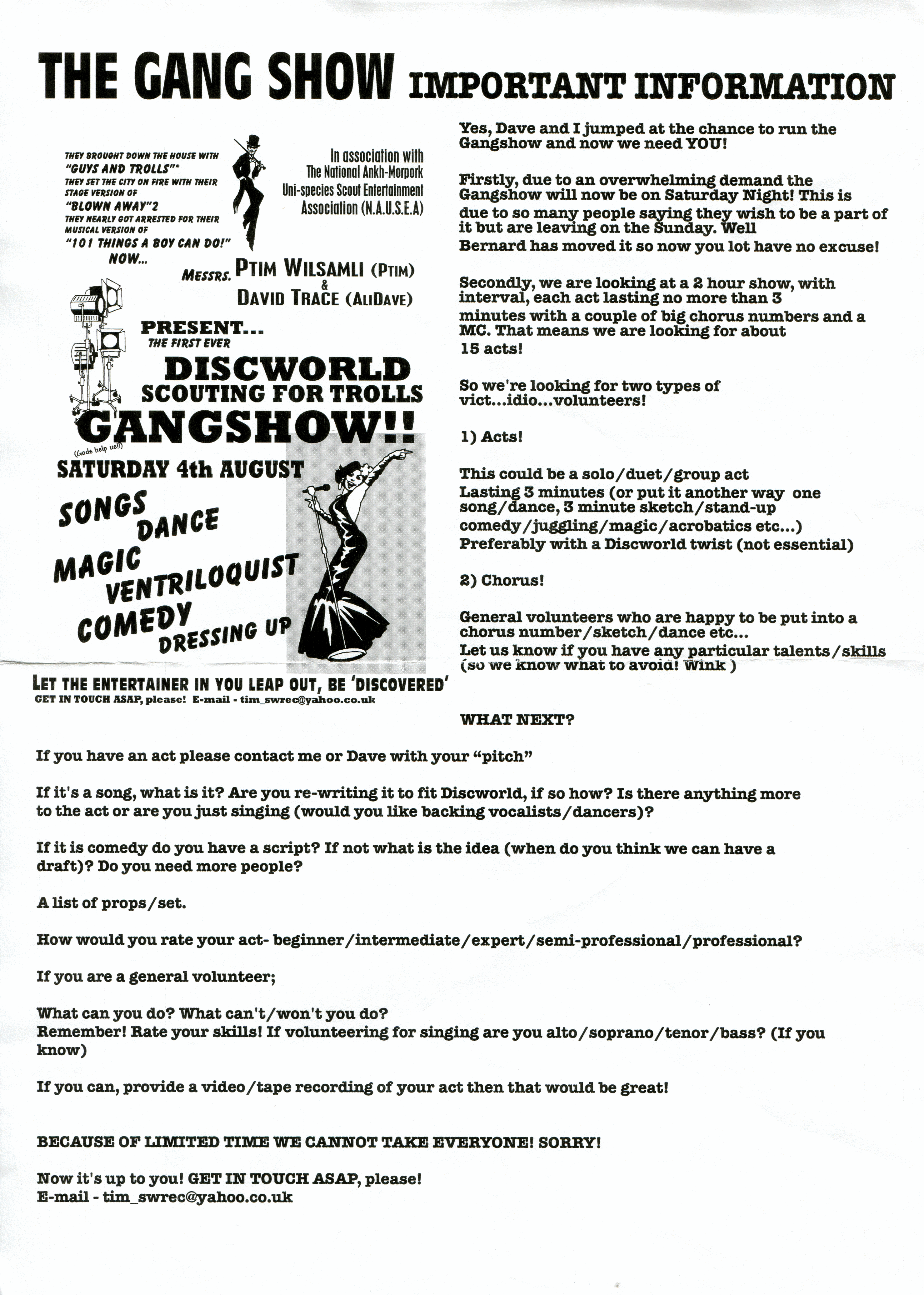 Ephemera DescriptionThe Discworld Jamboree 2007 was held in the sports field near Wincanton