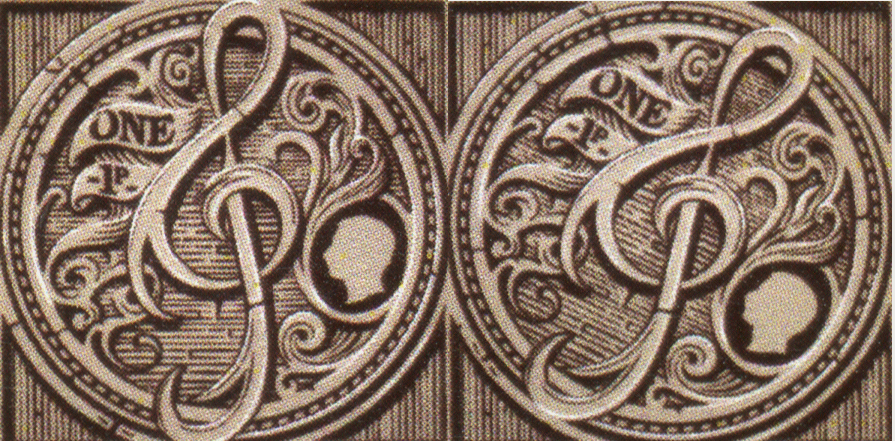 Portrait format white selvedge A.M.P.O. - YEAR OF THE SNEEZING PANDA - HONOURING THE ANKH-MORPORK GUILD OF MUSICIANS top and bottom PRINTED BY TEEMER & SPOOLS OF ANKH-MORPORK doubled left ascending right descending