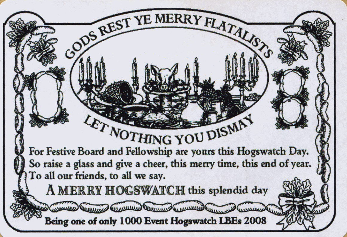 At the bottom it states "Being one of only 1000 Event Hogswatch LBEs 2008"